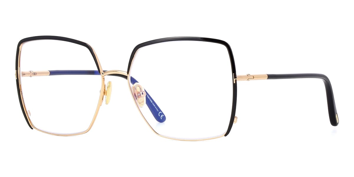 This square Tom Ford optical comes in a shiny black and gold frame.