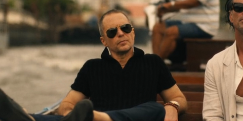 Sam Rockwell was seen wearing Ray-Ban Aviator 3025 L0205 Gold/G15 Green sunglasses in The White Lotus season 3, episode 6, as Frank
