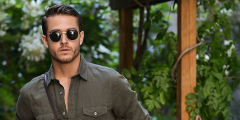 Menswear content creator Adam Gallagher was seen wearing gold Ray-Ban Round Metal 3447 001 sunglasses in a social media post