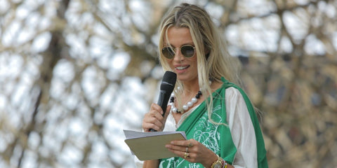 Czech model Veronika Varekova was seen wearing gold Ray-Ban Round Metal 3447 001 sunglasses with green lenses t the Kwita Izina gorilla naming ceremony in Rwanda in 2017