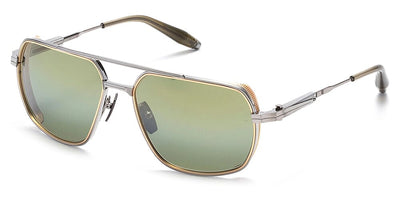 This square Akoni sunglass comes in a brushed black frame with dark grey to olive green lenses.