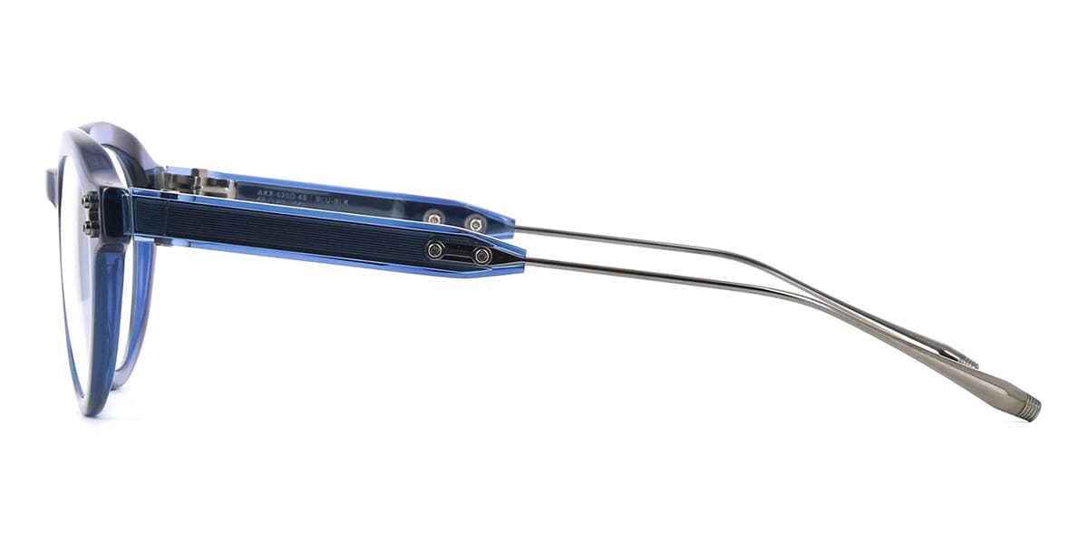 This round Akoni optical comes in a crystal blue with black palladium frame.