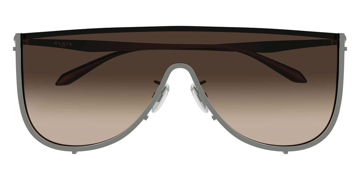This shield Alaia sunglass comes in a ruthenium frame with brown gradient lenses.