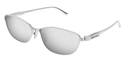 This square Balenciaga sunglass comes in a metallic grey frame with grey with light mirror lenses.