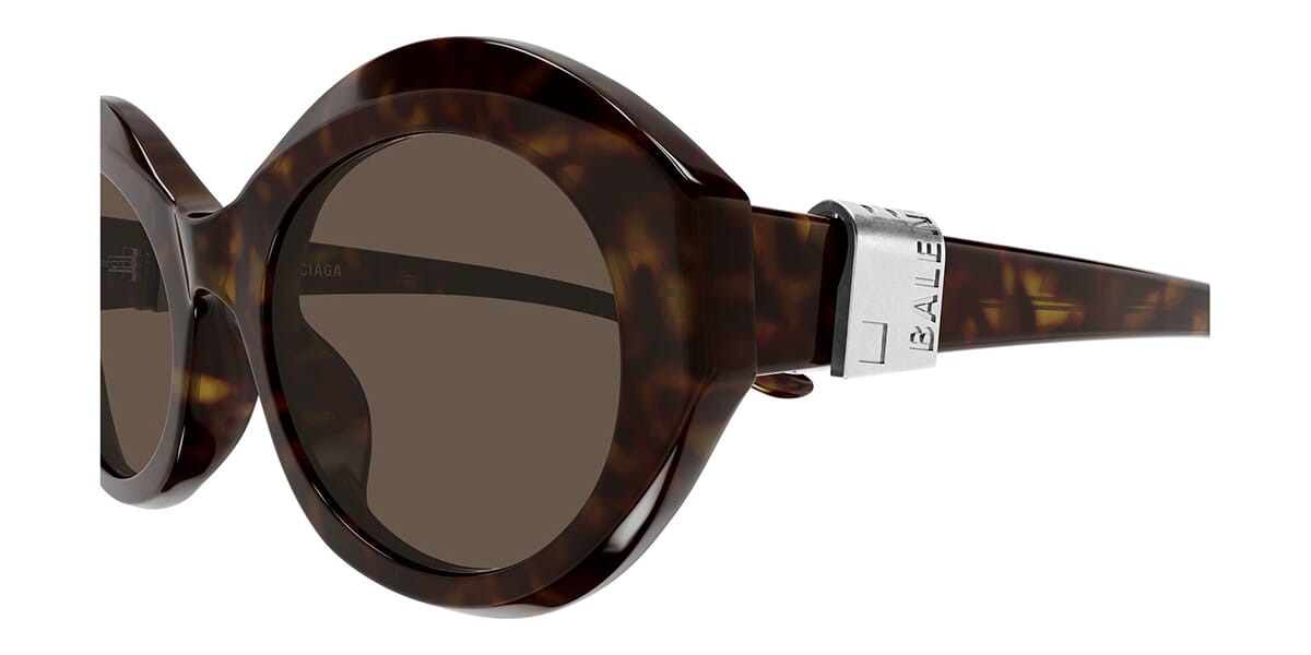 This round Balenciaga sunglass comes in a havana frame with brown lenses.