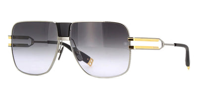 This square Balmain sunglass comes in a shiny gold and black frame with grey to clear gradient with light mirror lenses.