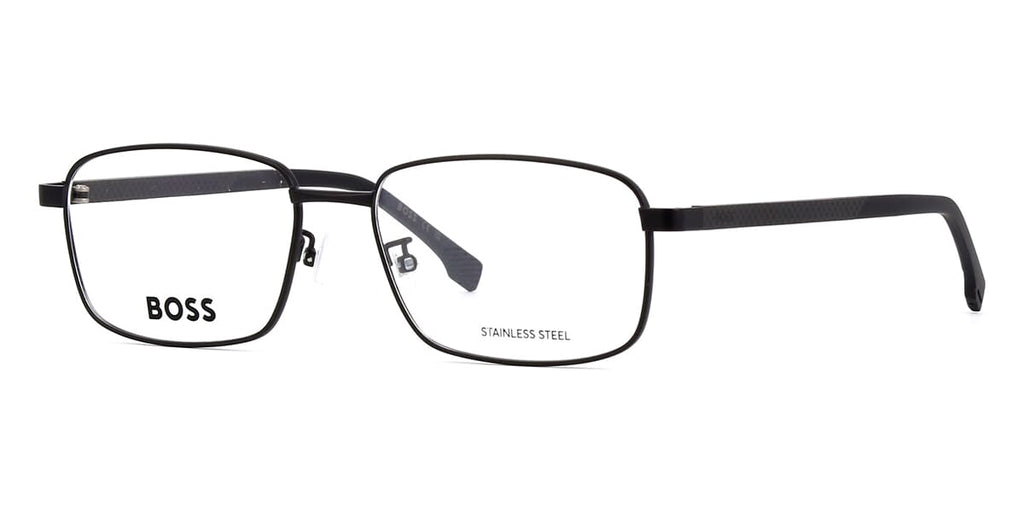 This square Hugo Boss optical comes in a matte black frame.
