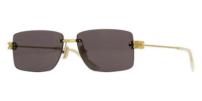This square Bottega Veneta sunglass comes in a gold frame with yellow lenses.