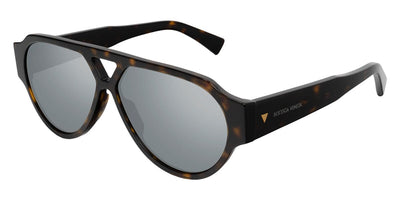 This aviator Bottega Veneta sunglass comes in a black frame with grey with light mirror lenses.
