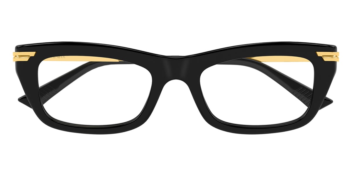 This square Bottega Veneta optical comes in a black with gold frame.