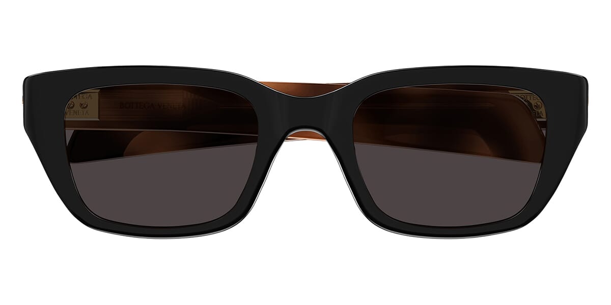 This square Bottega Veneta sunglass comes in a black frame with grey lenses.