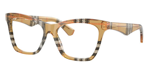This cat eye Burberry optical comes in a check sand frame.