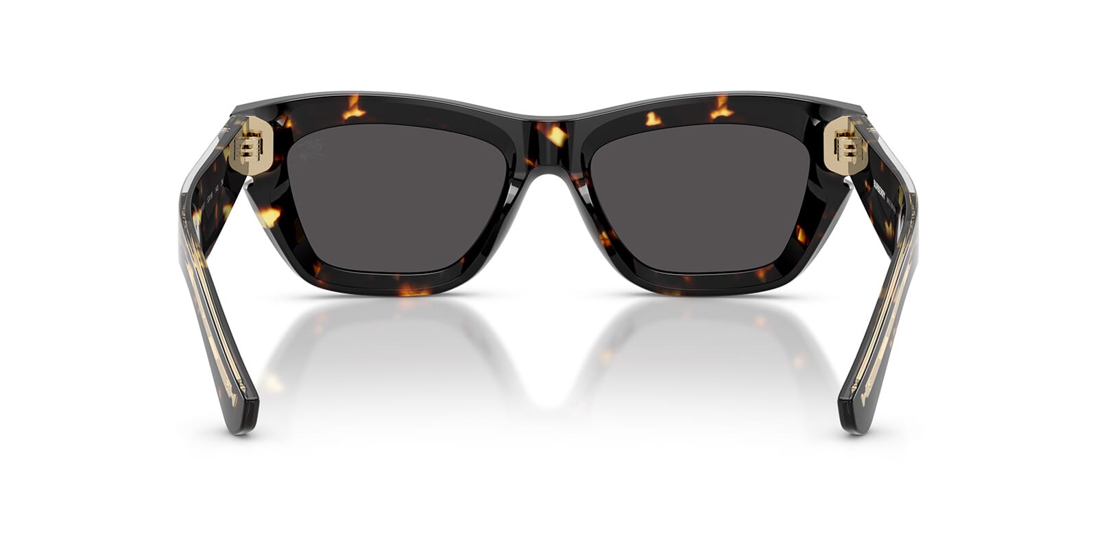 This cat eye Burberry sunglass comes in a yellow havana frame with dark grey lenses.