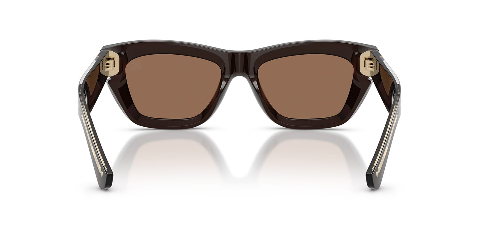This cat eye Burberry sunglass comes in a brown frame with dark brown lenses.