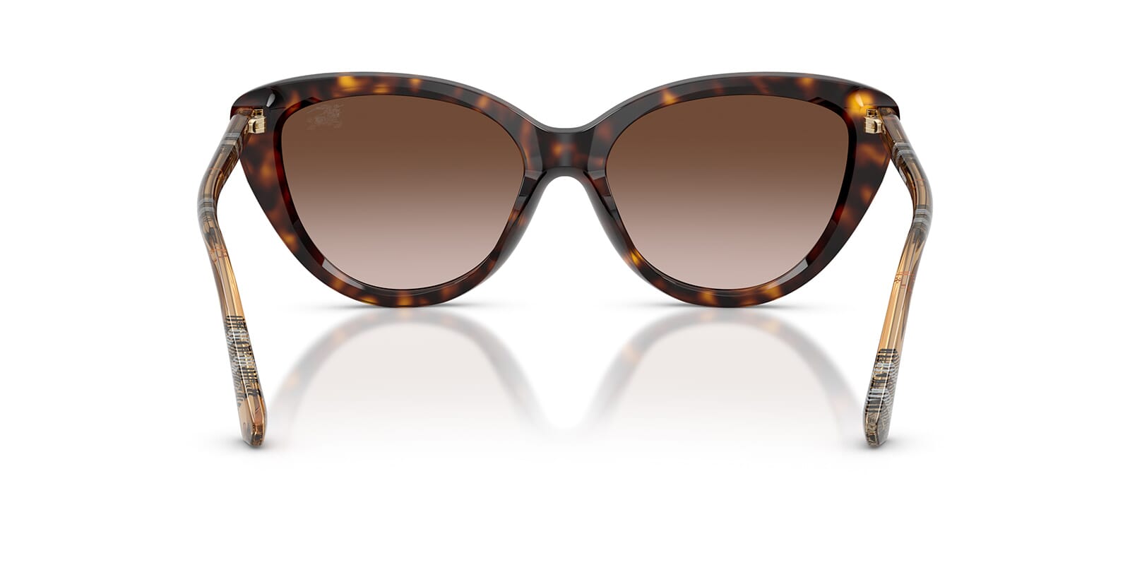 This cat eye Burberry sunglass comes in a dark havana frame with brown gradient lenses.