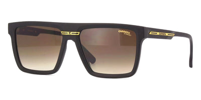 This square Carrera sunglass comes in a shiny black and grey frame with blue gradient lenses.