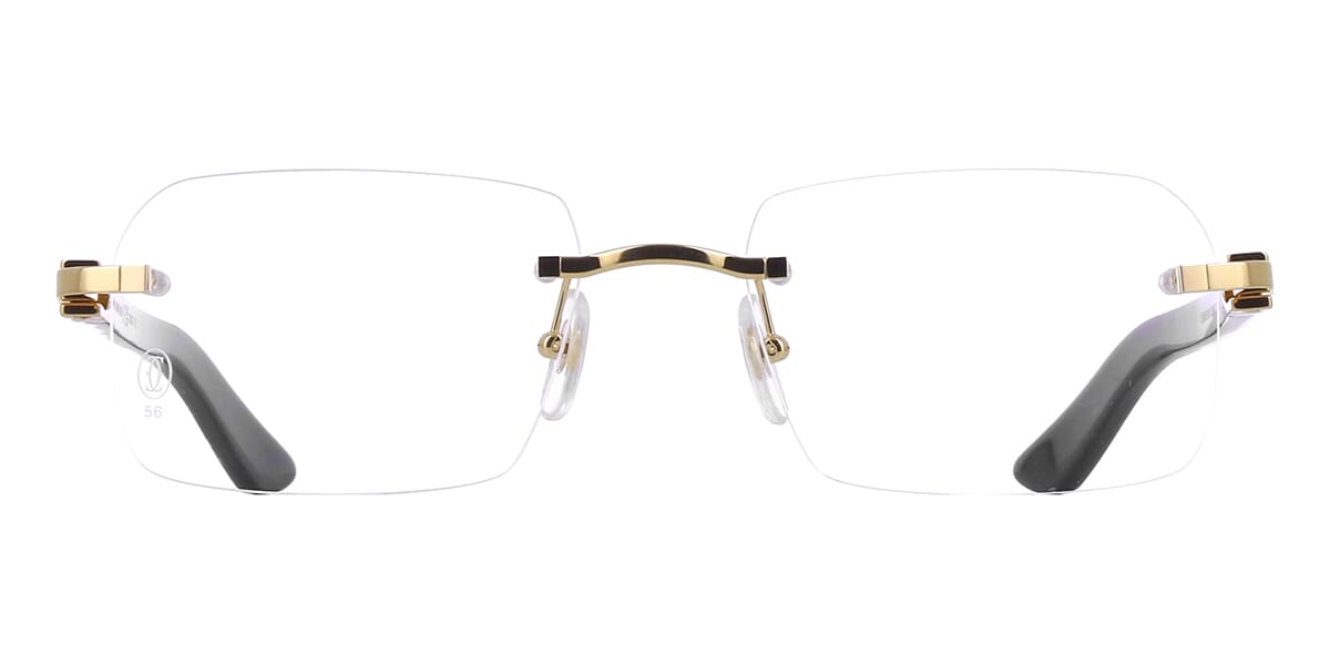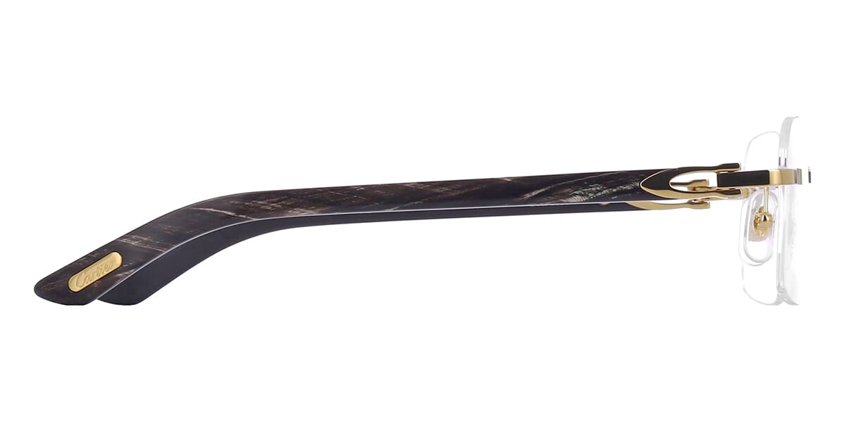 This square Cartier optical comes in a shiny gold with genuine dark buffalo horn frame.
