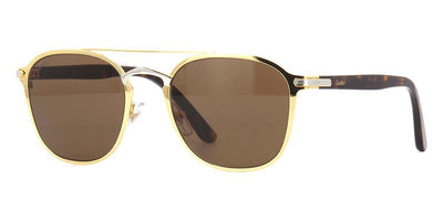 This square Cartier sunglass comes in a gold with havana frame with green lenses.