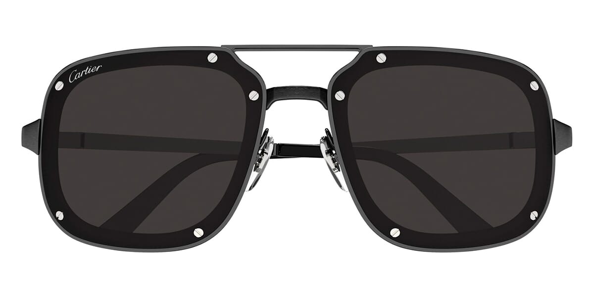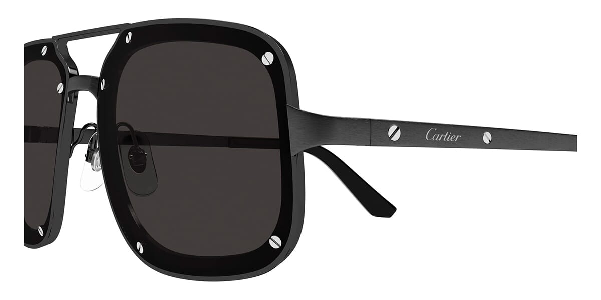 This square Cartier sunglass comes in a black frame with grey with light bronze flash mirror lenses.