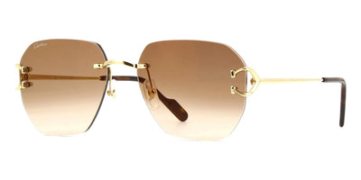 This square Cartier sunglass comes in a shiny gold frame with grey gradient lenses.
