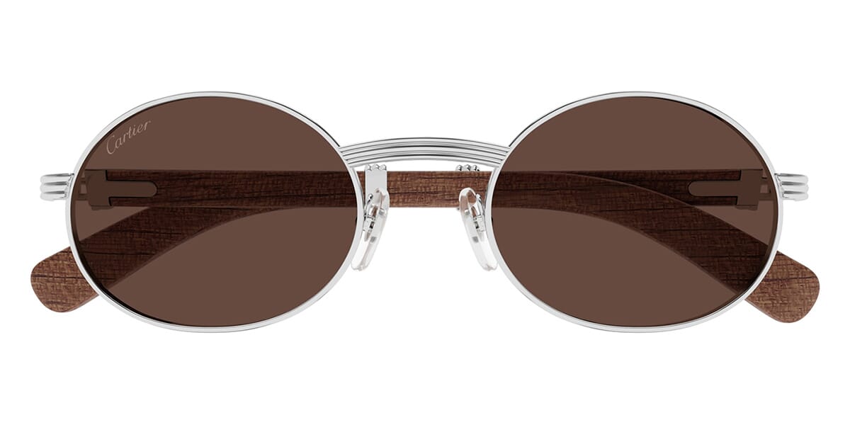 This square Cartier sunglass comes in a silver with brown real bubinga wood frame with brown lenses.
