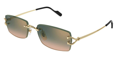 This square Cartier sunglass comes in a silver frame with deep green to turquoise gradient with gold flash lenses.