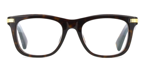 This square Cartier optical comes in a shiny dark havana and gold frame.