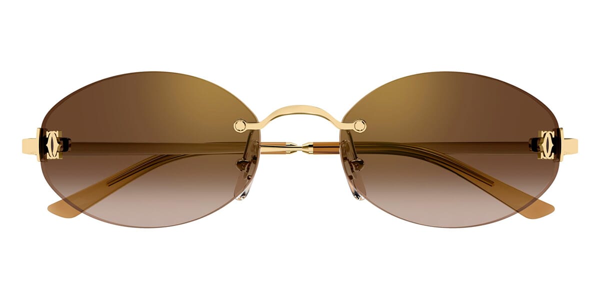 This square Cartier sunglass comes in a gold with brown frame with brown gradient with bronze flash mirror lenses.