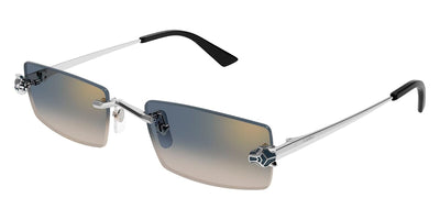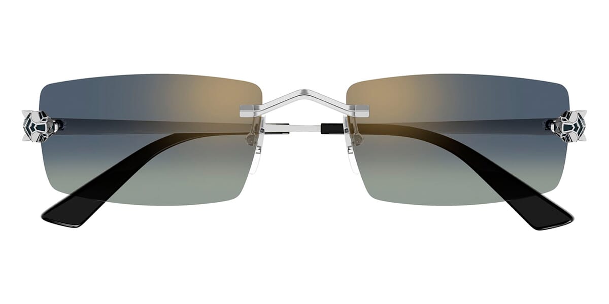 This square Cartier sunglass comes in a silver frame with blue gradient with bronze flash mirror lenses.