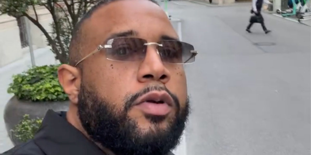 This square Cartier sunglass comes in a silver frame with grey lenses.