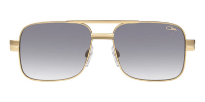 This square Cazal sunglass comes in a black and silver frame with green gradient lenses.