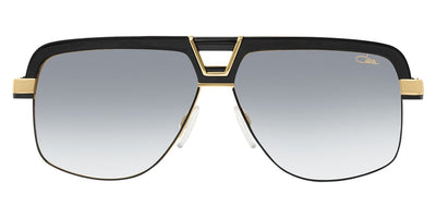 This square Cazal sunglass comes in a black and gold frame with grey gradient lenses.