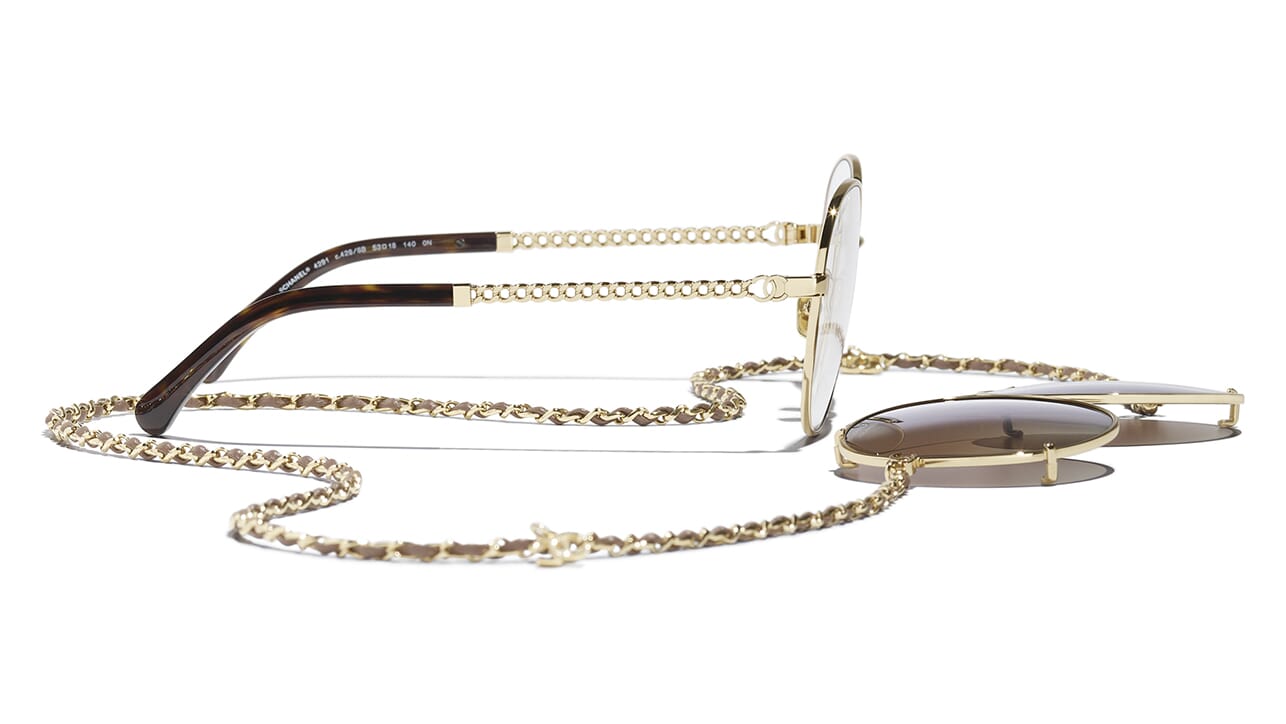Pale Gold frame. Gradient Brown Polarised (clip on) with Clear blue-violet light filter lenses.