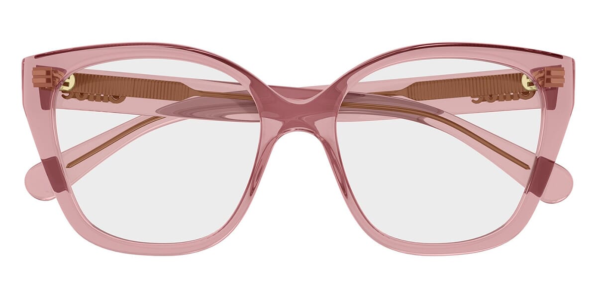 This cat eye Chloe optical comes in a shiny pink crystal frame.