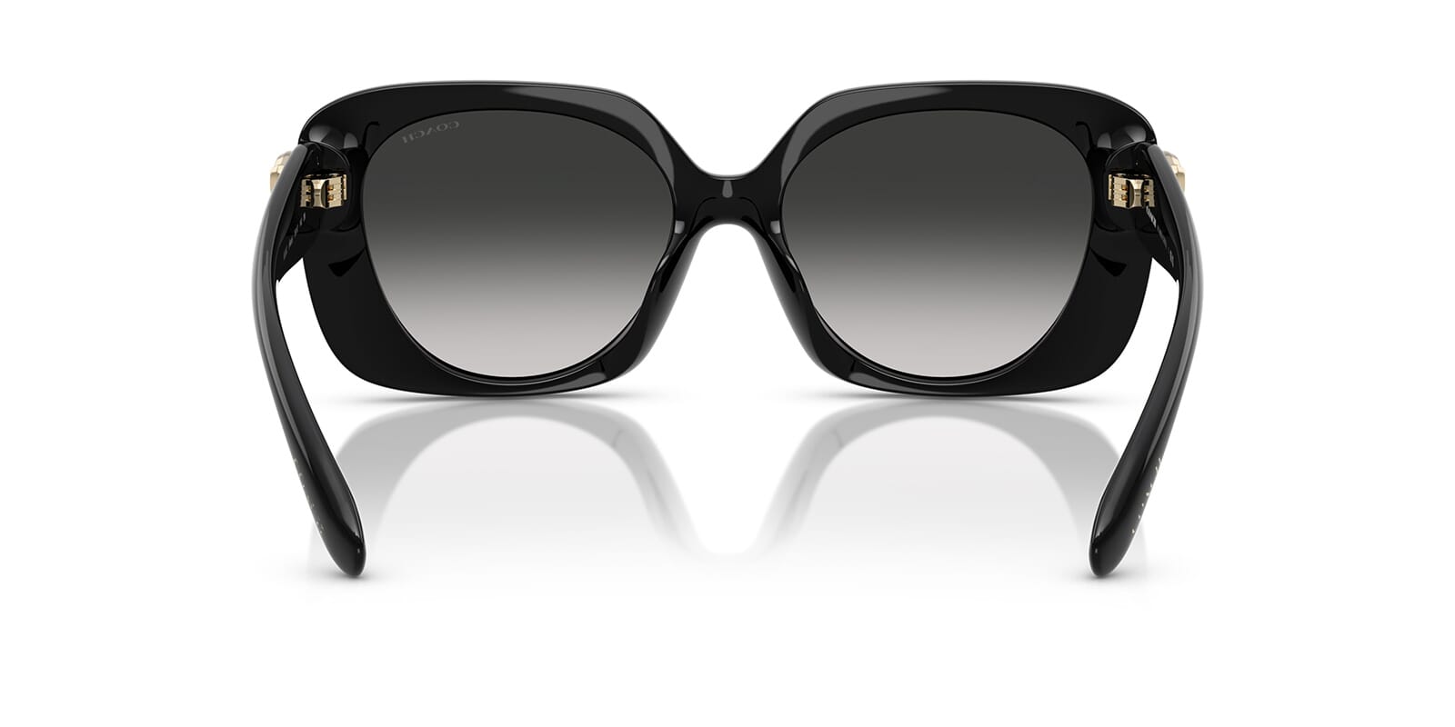 This square Coach sunglass comes in a black frame with grey gradient lenses.