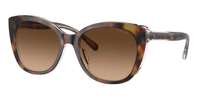 This cat eye Coach sunglass comes in a black and grey crystal frame with grey gradient lenses.