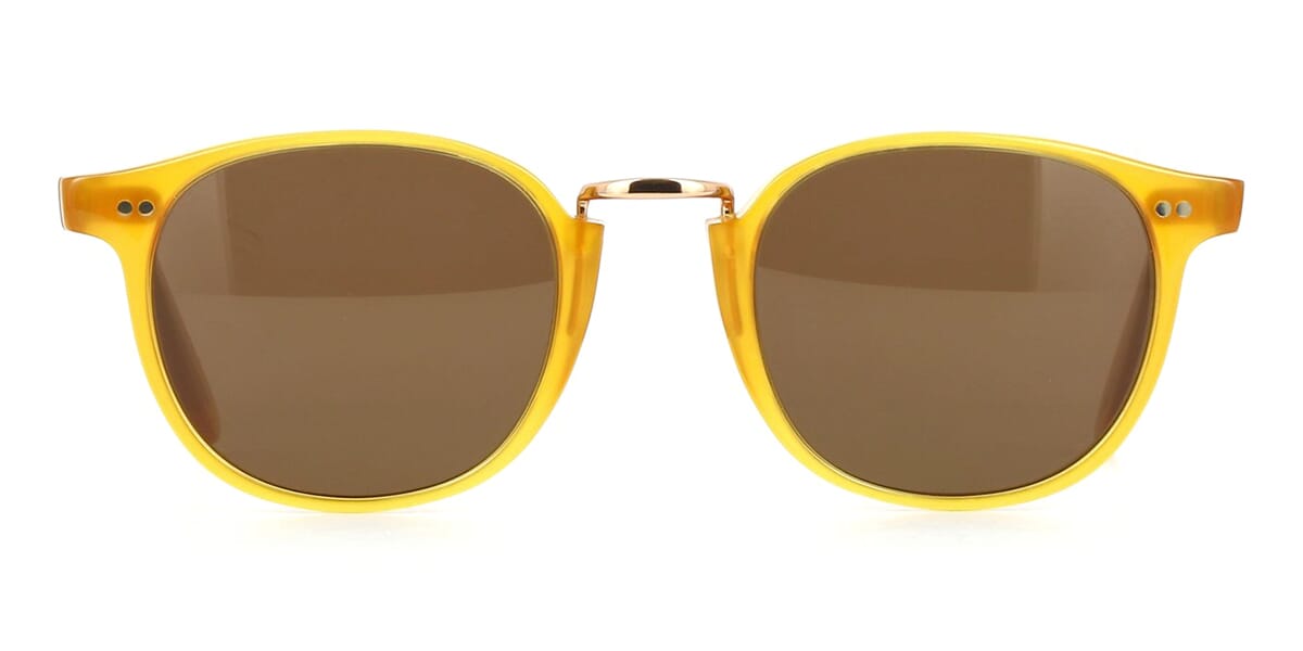 This square Cutler and Gross sunglass comes in a mustard yellow frame with brown lenses.