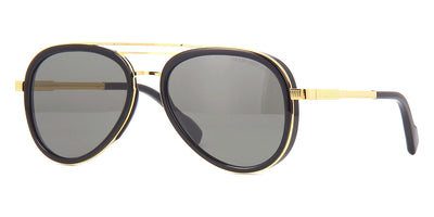 Aviator sunglasses featuring Japanese titanium combined with acetate rims. The frame also features modern explorer side shields integrated nose pads and extended temple tips with ribbed detailing.