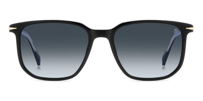 This square David Beckham sunglass comes in a black frame with azure gradient lenses.