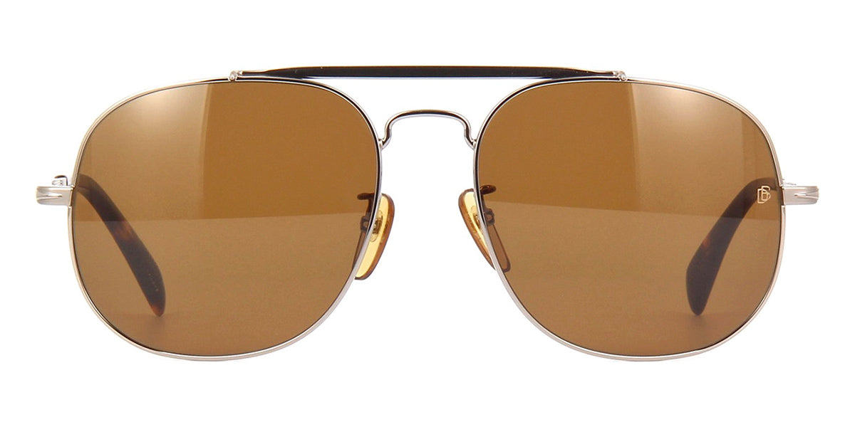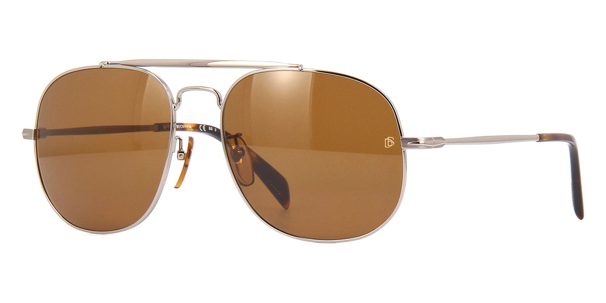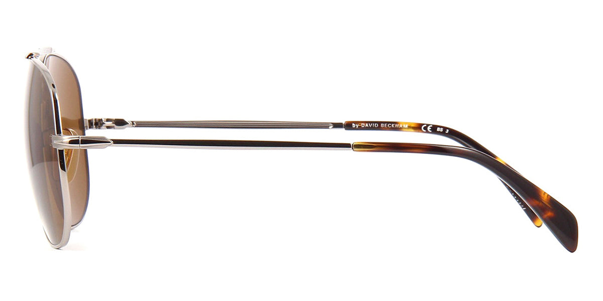 This square David Beckham sunglass comes in a ruthenium frame with brown lenses.