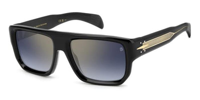 This square David Beckham sunglass comes in a shiny black frame with grey with light mirror lenses.