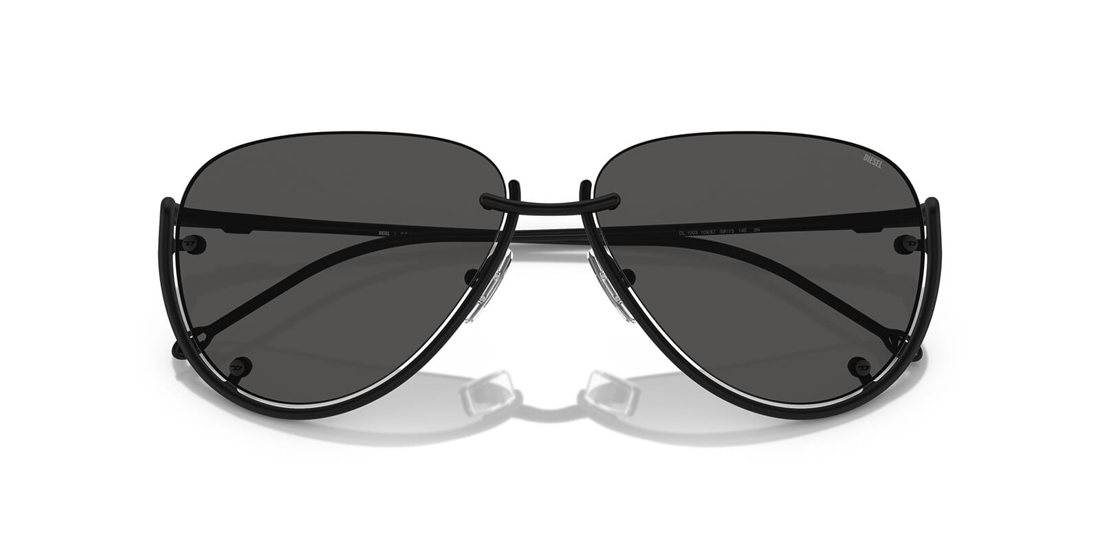 This aviator Diesel sunglass comes in a matte black frame with dark grey lenses.