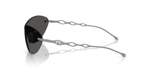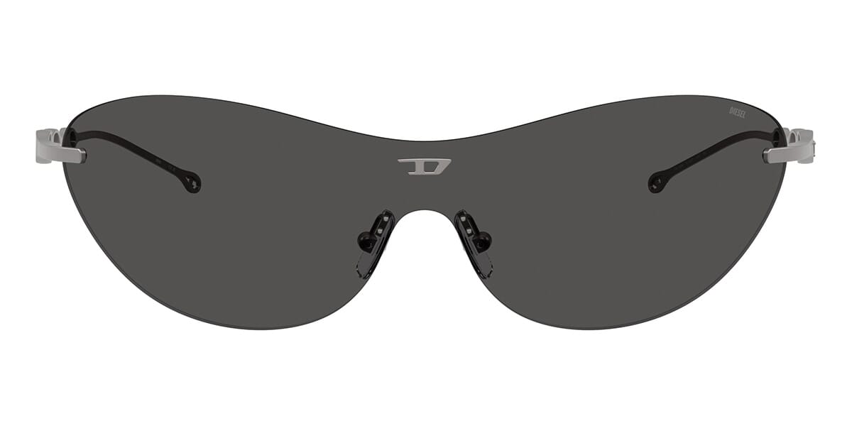 This round Diesel sunglass comes in a matte gunmetal frame with dark grey lenses.