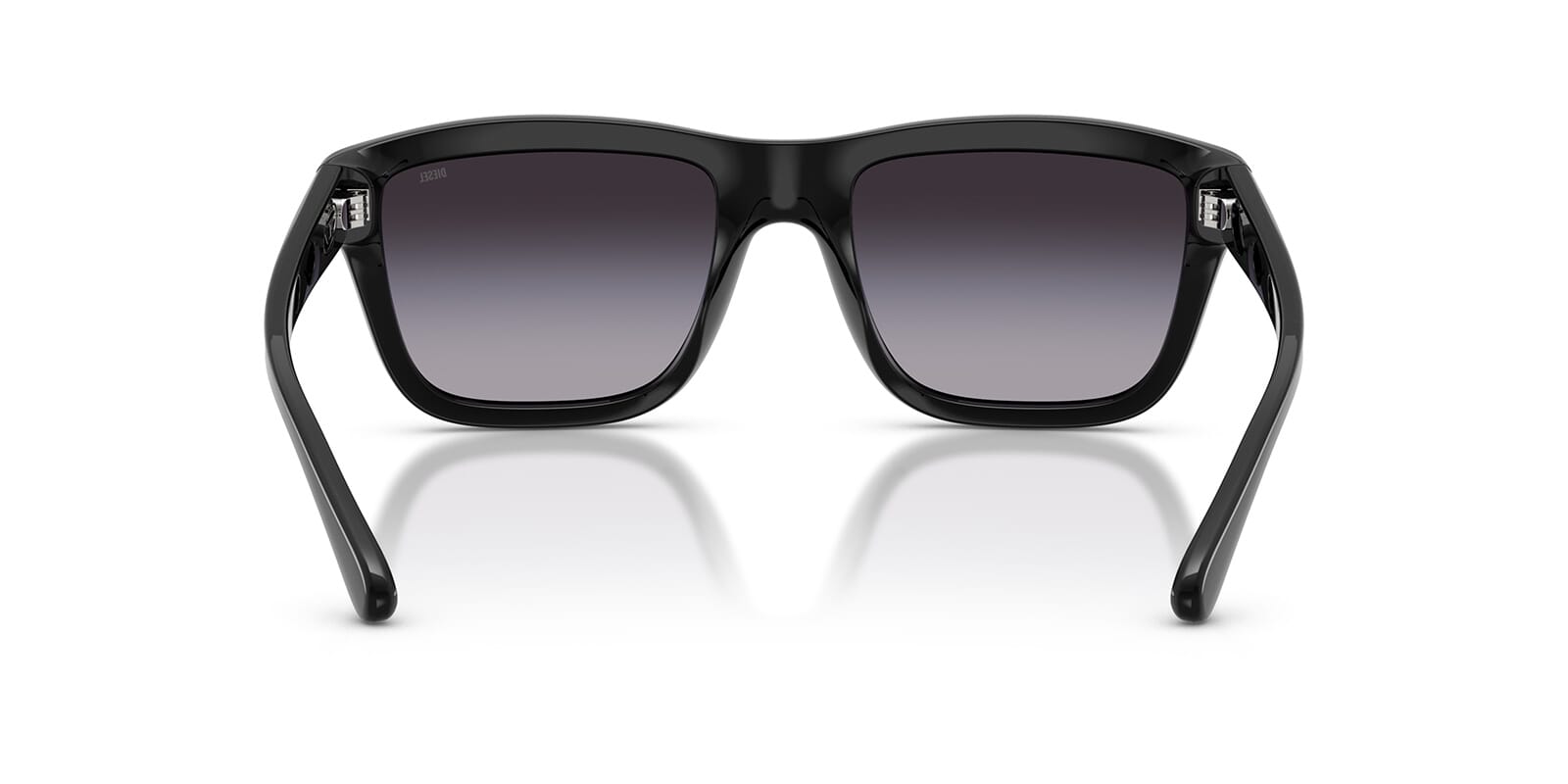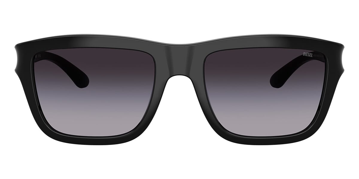 This square Diesel sunglass comes in a shiny black frame with grey gradient lenses.