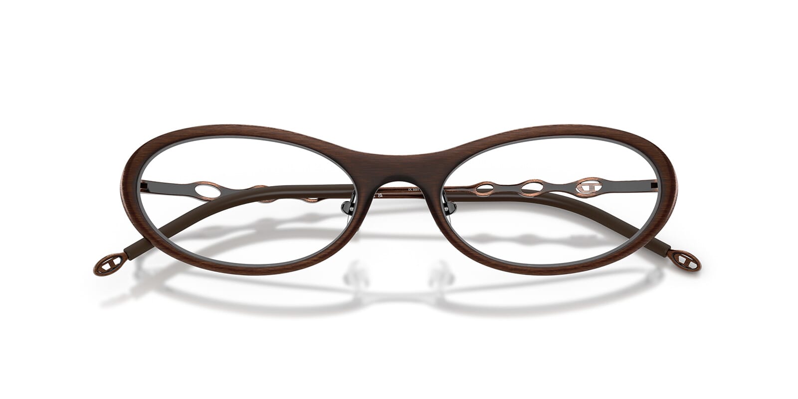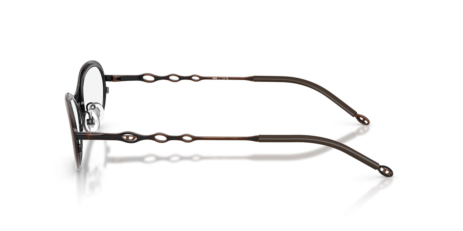 This round Diesel optical comes in a shiny brushed antique brown frame.