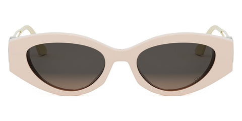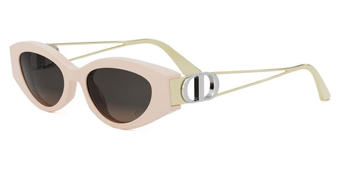 This cat eye Dior sunglass comes in a shiny light pink frame with brown organic lenses.