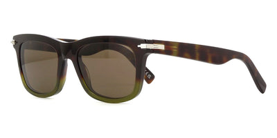 This square Dior sunglass comes in a shiny dark havana and yellow frame with grey with light mirror lenses.