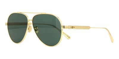 This aviator Dior sunglass comes in a shiny gold frame with pink with light mirror lenses.