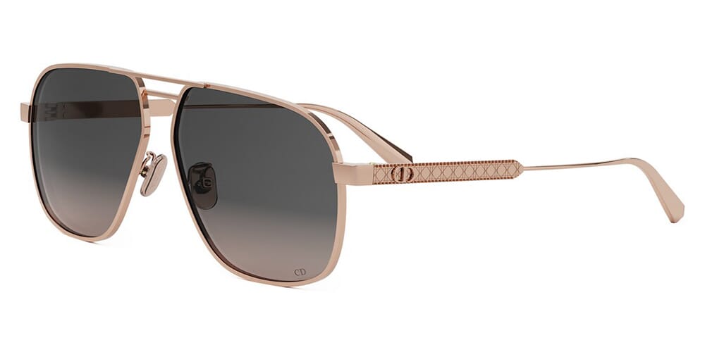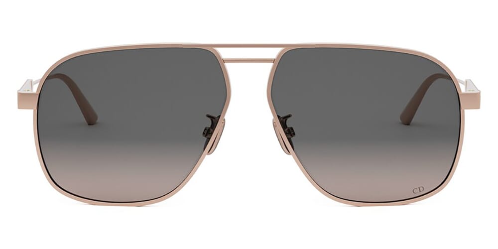 This square Dior sunglass comes in a shiny rose gold frame with grey gradient lenses.