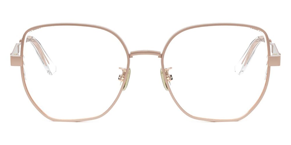 This square Dior optical comes in a shiny rose gold frame.